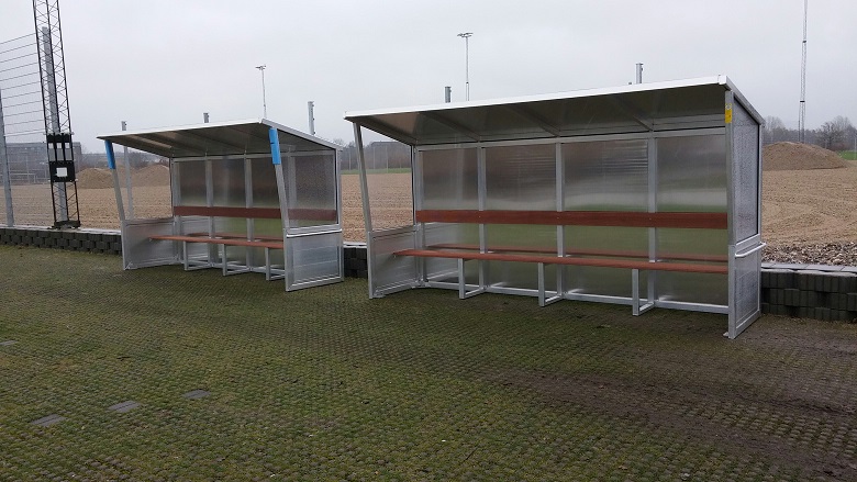 Så ankom vores nye spillerbokse til Kunstgræsbanen...